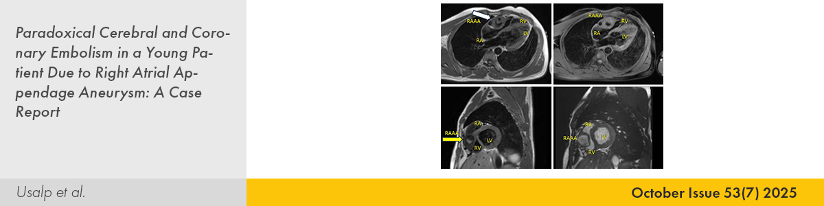 | 10. | Paradoxical Cerebral and Coronary Embolism in a Young Patient Due to Right Atrial Appendage Aneurysm: A Case Report Songül Usalp, Safiye Sanem Dereli Bulut, Filiz Çelebi, Emine Altuntaş PMID: 40625264 doi: 10.5543/tkda.2024.36737 Pages 541 - 544