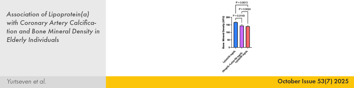 2. | Association of Lipoprotein(a) with Coronary Artery Calcification and Bone Mineral Density in Elderly Individuals Ece Yurtseven, Gizem Timoçin Yığman, Gizem Yaşa, Nigar Bakhshaliyeva, Kayhan Çetin Atasoy, Erol Gürsoy, Kemal Baysal, Saide Aytekin, Vedat Aytekin PMID: 40926629 doi: 10.5543/tkda.2025.87282 Pages 477 - 482